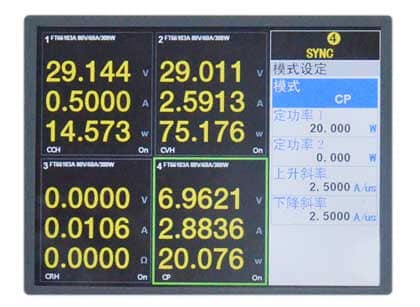 FT66100A是費思新一代多通道可編程直流電子負載,其配置的8英寸彩色屏幕,能夠同時顯示6個通道的工作內容,并根據通道數量, 自適應調整最佳顯示界面。本負載提供豐富的測試功能, 適用于各種直流電源、電池、充電器、LED驅動器或相關設備的測試, 其中既包含CC、CV、CR和CP等基本的測試模式, 還提供了LED測試模式及動態測試功能,動態頻率可達20KHz。FT66100A采用主機和模組一拖多的結構, 非常適合組建電源測試平臺, 能為您的設計和測試提供多種解決方案, 配合費思強大的上位機軟件, 無疑是您測試中的最佳助手。